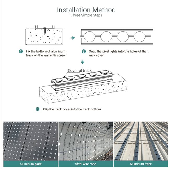 7.The product can be used steel wire buckle.Aluminum profile perforation. Glass glue direct fixation and other installation methods.
